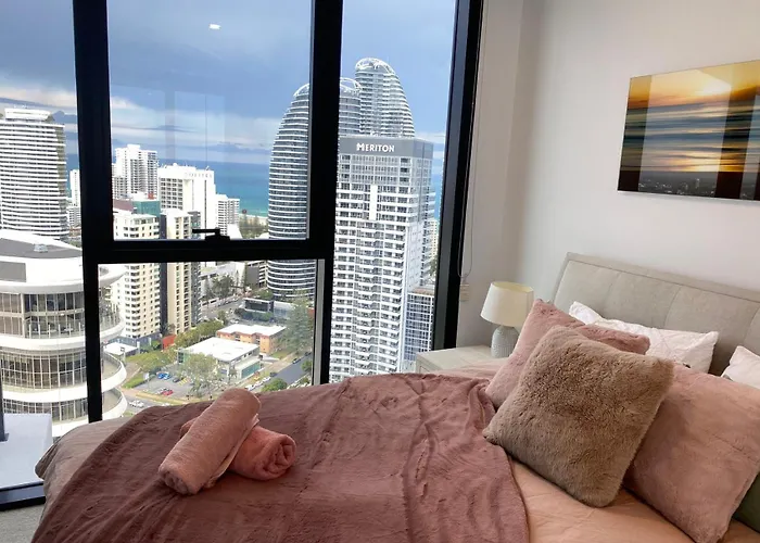 Located a 16-minute walk from the Broadbeach Branch Library, the 70 m² Cozy Skyline Oceanview 2B Casino Apartment Gold Coast is 3.1 km from a top family-friendly place like Timezone Surfers Paradise. Offering access to a private swimming pool, this 1-bedroom apartment is within easy reach of The Star Gold Coast.